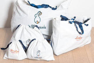 Chaque peluche peut être accompagnée d’un pochon personnalisé (prénom, date ou mot doux) pour un cadeau unique et symbolique.