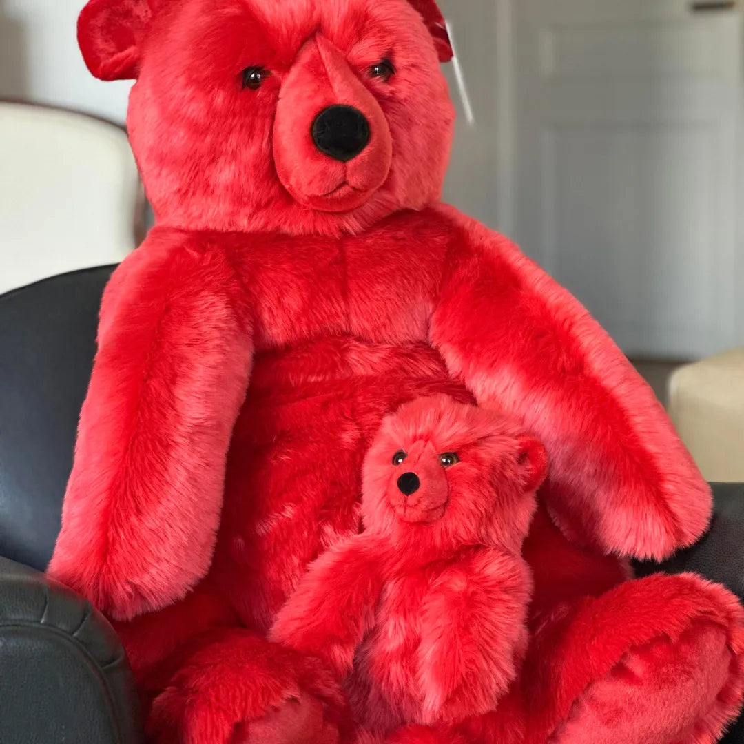 Mon Ours Jules s’est vêtu tout de rouge pour illuminer votre St Valentin ! Sa longue fourrure sur le corps,  ses poils courts et doux sous ses pattes et ses petites oreilles, ses paupières en cuir, son nez en feutrine et sa bouche cousue avec amour, lui donne une expression unique ! Pour la déco ou pour les câlins, notre Jules va faire des heureuses !