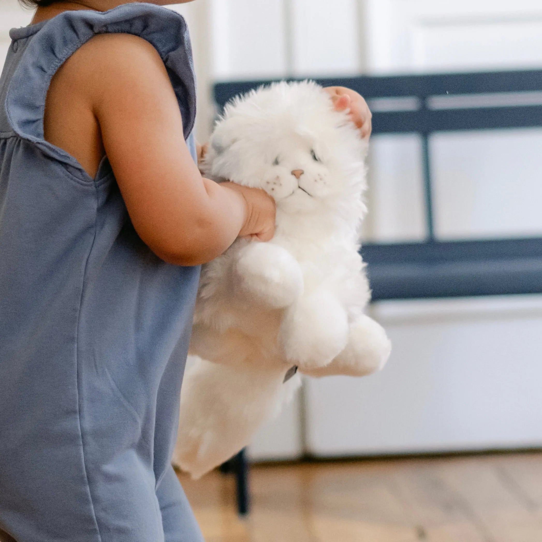 Je suis Oscar, le chat en peluche blanc de la Pelucherie, le souverain incontesté des câlins et l’aristocrate des ronrons.